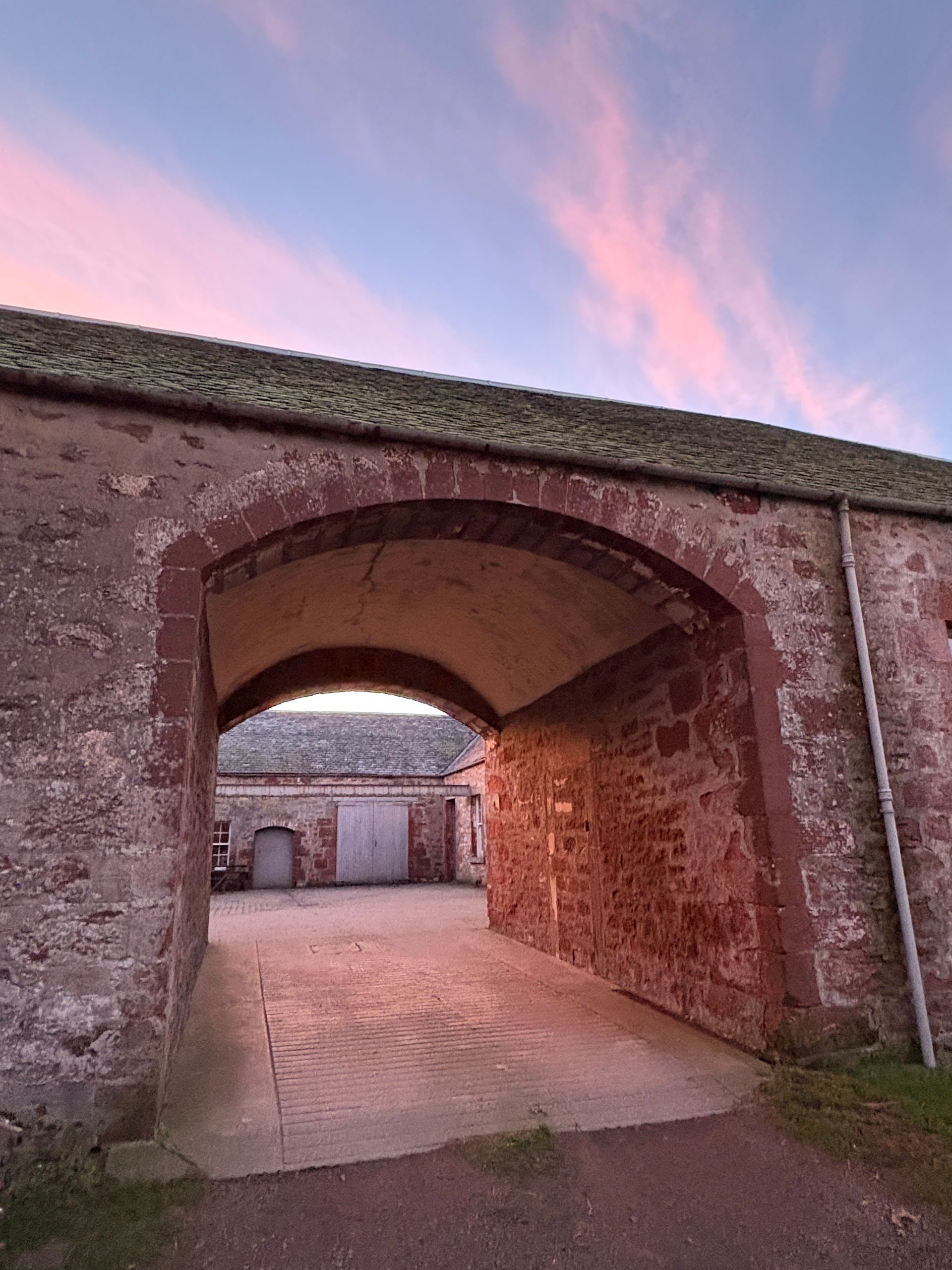 I haven't needed my solar panel app to tell me there's not been much sunlight these last couple of weeks. The grey flat January days roll over, distinguished mostly by how much precipitation they bring - anything from a smirr, a smidge, rain but not wet rain, proper rain, fat drops, a torrent. And then sometimes, there's just a break, and there it is - the rays reaching us, reminding us of brighter days, of colour and depth. I soak these in like the warmth I know they will bring in a few short months from now and feel lifted by the promise of longer days to come. It's heat may not be there yet, but when the sun does shine the Kippen sandstone of our buildings glows. It might not warm your hands but it definitely warms the heart. There's something really special about this soft red stone that features in much of the vernacular buildings around here. Old Leckie House is built from it - quarried we think from the nearby 'waterfall' area with its towering cliffs - but much is covered by our traditional lime render which offers protection from erosion by wind and rain. It's much easier to see in the old Steading - and I never tire of the play of light on the exposed surfaces. Much like the land itself the buildings have their own tales to tell - the dated pencil etchings of the joiners who built trusses, the stone mason's marks carved into the stones themselves or the gouges scored out by years of sharpening knives on the stones framing the stable door. It's enough, even when the sun is low, to lighten your day.